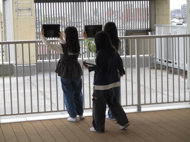 2回目の空は、雲が多く、前回と変化があり、比較しやすい天気でした。「前と、雲の形が違う。」「雨が降りそうだね。」と雲と天気を結び付けて考えていました。