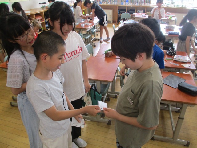 運動会を一緒にがんばった団の仲間とありがとうのメッセージを交換しました。