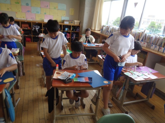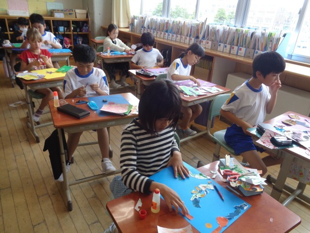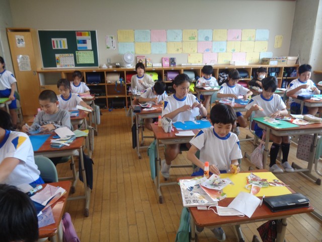 思い思いのイメージを膨らませながら、自由に紙を切り貼りしていました。