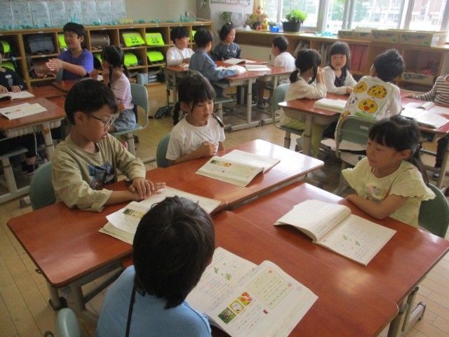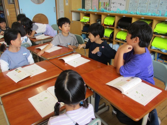 説明文「たんぽぽのちえ」で学習した、順序を考えて伝える方法を活かして、グループで給食の準備について考えを話し合いました。