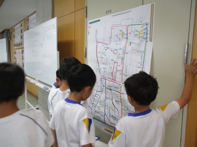 友達が見付けてきた「町のすてきな場所」について、どのようなところがすてきなのか聴き合いました。友達の発表から気になった場所を選んで「〇〇って何を売っているの?」「何するところ?」などと進んで質問して、興味のある場所を探っていました。