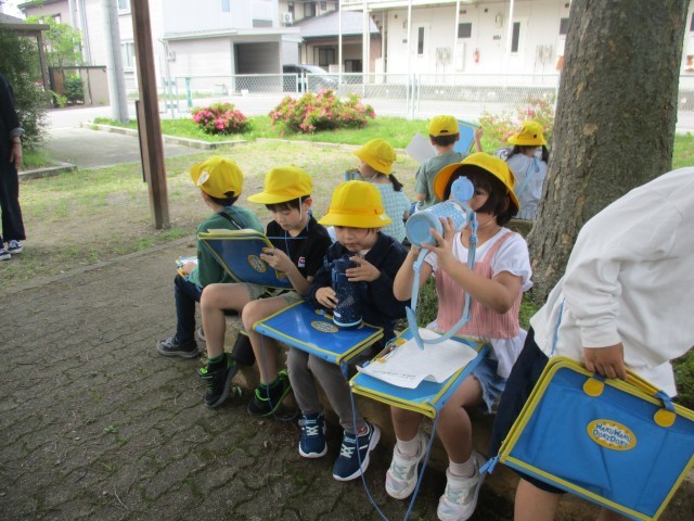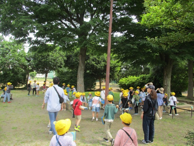 今日は、付き添いボランティアの保護者の皆様に見守られながら、青・赤コースを中心に探検しました。友達の話を聴いて行ってみたいと思っていた場所に実際に行くことができたことを喜んだり、初めて歩いて思いがけない発見をしたりと、元気に探検しました。