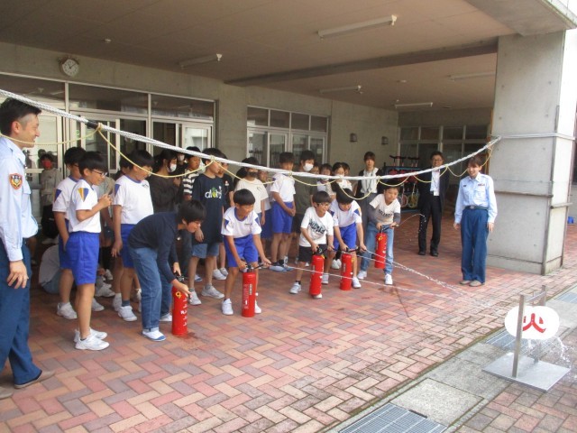 BFCバッジ授与式と消火器体験を行いました。消防署の方の話から火の扱いには十分気を付けたり、危険がないか確かめたりしようと、改めて決意を固める子供たちでした。