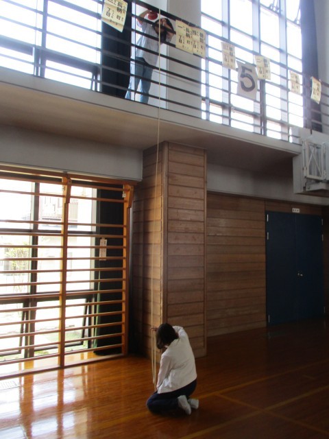 算数科では、巻き尺の使い方を理解し、測定する活動をしました。中には、高さを測る姿も見られました。子供達は、見当をつけてから実際の長さを測るたびに、予想外の長さだと驚いていました。