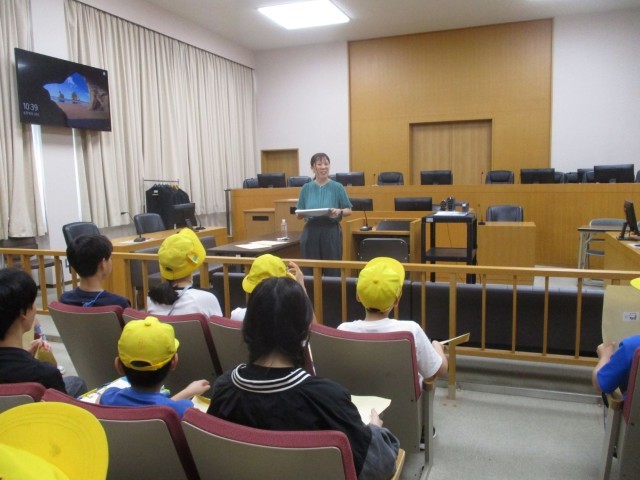 富山地方裁判所の見学へ行きました。社会科で学習した立法機関の役割について実際に見たり聞いたりして確かめることができました。