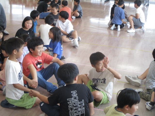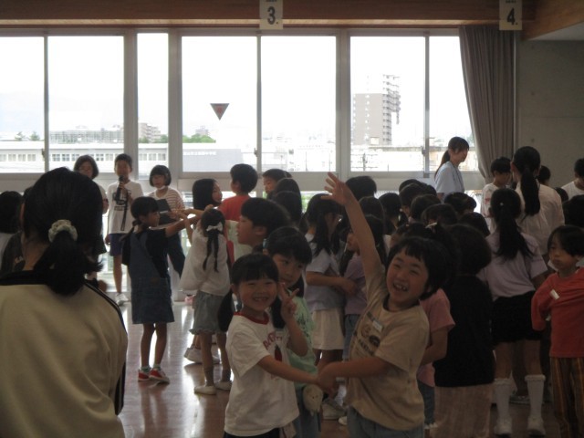 集会委員会が企画したスマイルレクリエーションがありました。猛獣狩りゲームが行われました。2年生はルールを守って、楽しそうに参加していました。
