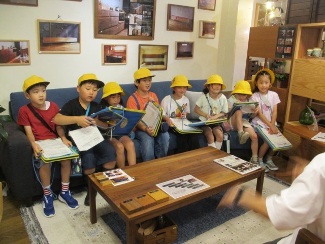 あいにくの雨の中でしたが、元気に千石町方面の町探検に行ってきました。まずは、ヤマザキデイリーストア・みやもと家具・寿司正の方々に協力いただきました。子供たちは嬉しそうに質問したり、店内を見回したりしていました。