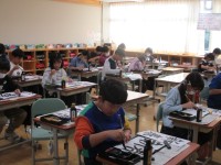 書写の時間に書初めの練習をしました。今年の課題は「新春の志」。今日は「新」と「...