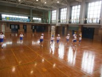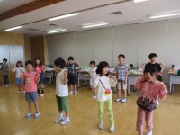 「ドレミのうた」に合わせて、体で音階を表現しました。高い音になるにつれ、手で触...