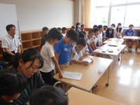 学級代表が、代表委員会に参加しました。議長の話を聞きながらクラスで話し合った意...