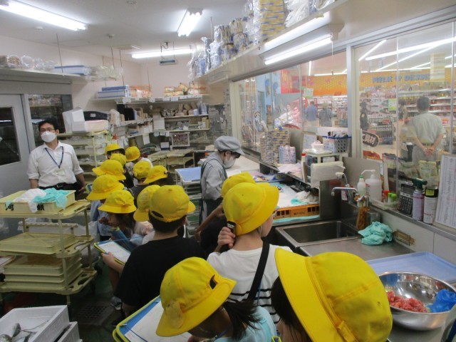 スーパーマーケット見学に行きました。子供たちは、商品の種類や店員さんの様子等から、気づいたことや分かったことをたくさんワークシートに書いていました。
