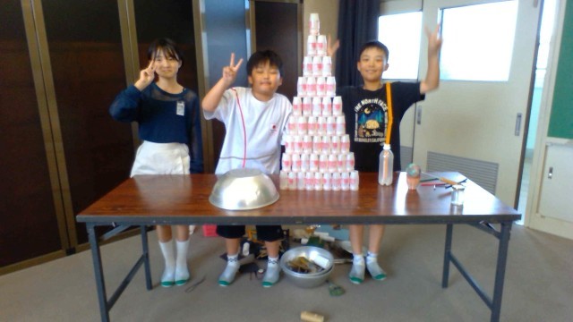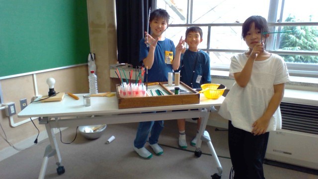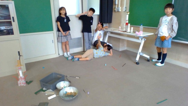 図工室や教室にある物を用いて、光を当ててどんな影を作るのか相談しました。