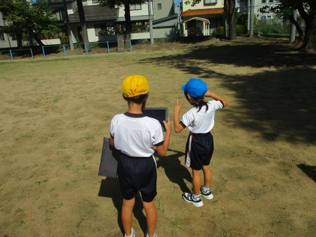 かげはどんなところにできるのか調べました。かげができるところは、太陽の向きと関係があることに気付いていました。