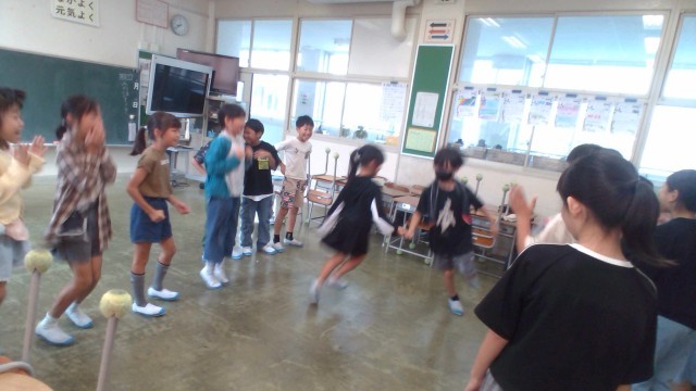 今日の学級タイムは、遊び係がアンケートを基に企画しました。アンケート結果1位だった『花いちもんめ』を、みんなで楽しみました。アンケート2位は、ドッジボールでした。