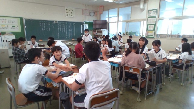 1限に国語科「どちらを選びますか」の学習を行いました。「海か、山か」どちらがよいか、自分がおすすめする理由を伝えたり、反対の意見をもつ相手に質問したりして、進めました。先生役の一人が、最後は「説得力」をキーワードに、自分が行くなら「海か、山か」どちらがよいか、悩みながら選択していました。
