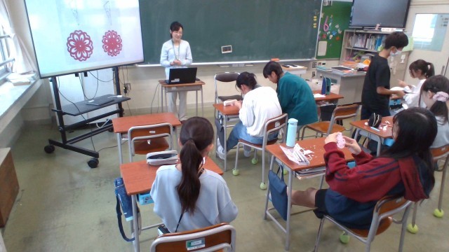 また、剪紙という中国伝統の切り絵を体験しました。外国の文化を楽しみました。