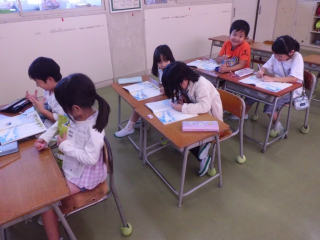 くじらぐもや子どもたちがどんなことを話しているのかを、ペアで考えました。