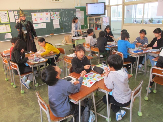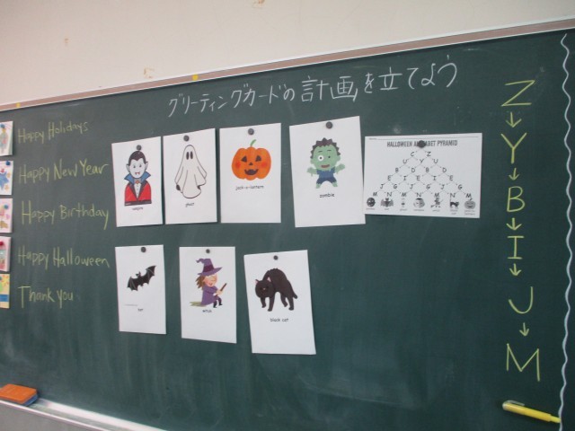 もうすぐハロウィンですね。外国語活動のいろんな場面に、先生からの子供たちを楽しませるくふうが感じられます。