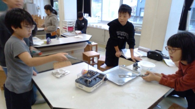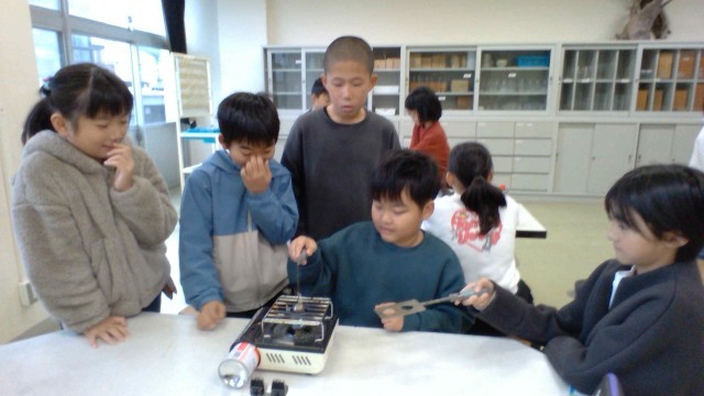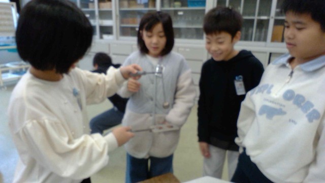 金属の体積はあたためたり、冷やしたりすると変化があるのか、用具を安全に用いて実験することができました。