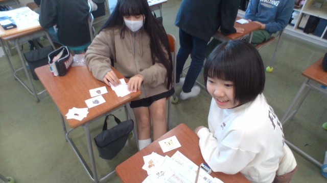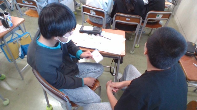 生き物カードを使い、ペアで生き物が暮らす場所について伝え合いました。