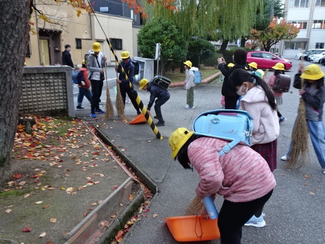 柳っ子に落ち葉はきを頼むと、快く引き受け、毎朝竹ぼうきを持って活躍中です。