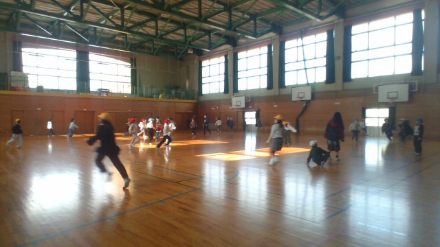 今日は、3・4年生と体育館でこおりおにをしました。寒いと感じても走ると体も心もあたたまります。感想では、「委員会の鬼の人が、優しくタッチしてくれた。」と発言していました。