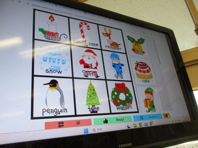 今日の外国語活動は、2学期最終日でした。もうすぐクリスマス。ホリデービンゴを楽しみました。毎回最後に歌っているグッバイソングは、振り付けも完璧です。