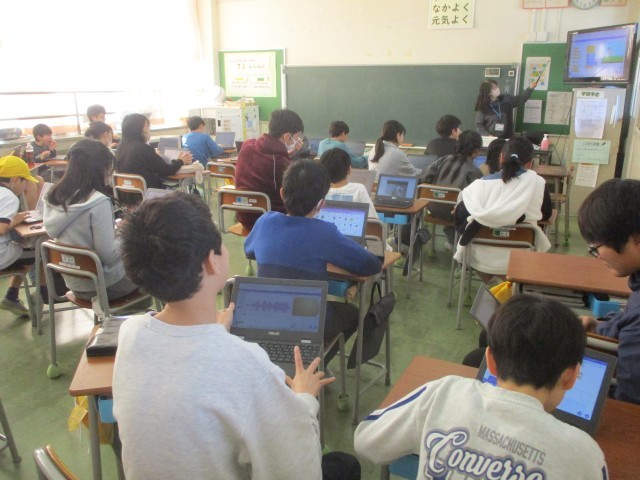 今日の4限は、プログラミング学習を行いました。昨年度も使用したScratch(スクラッチ)を使用して、学習しました。操作の仕方を思い出しながら、思うように動かすにはどうすればよいか、試行錯誤していました。