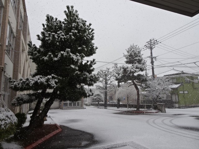 前庭の木々が雪化粧をしています。雪の年の瀬となりました。