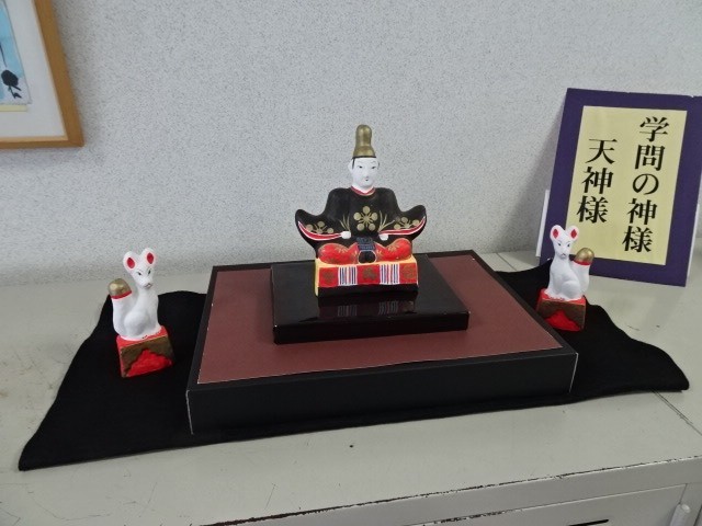 学校の玄関には、受け継がれている天神様が飾られ、正月を迎える準備ができました。