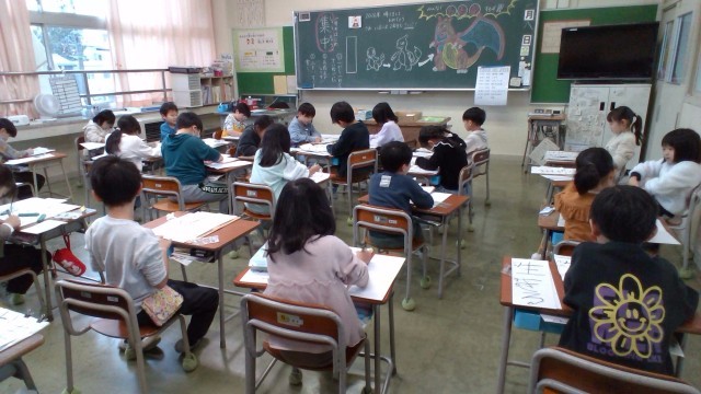 書初め大会では、冬休みの練習の成果を発揮しようと取り組みました。