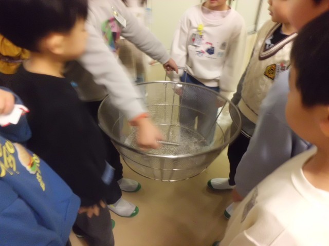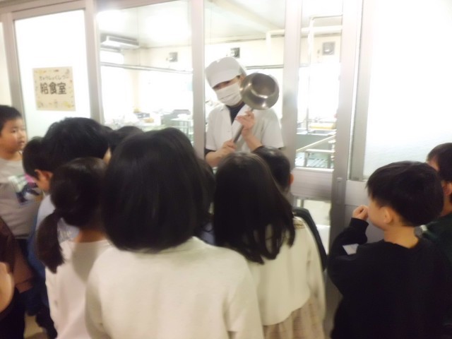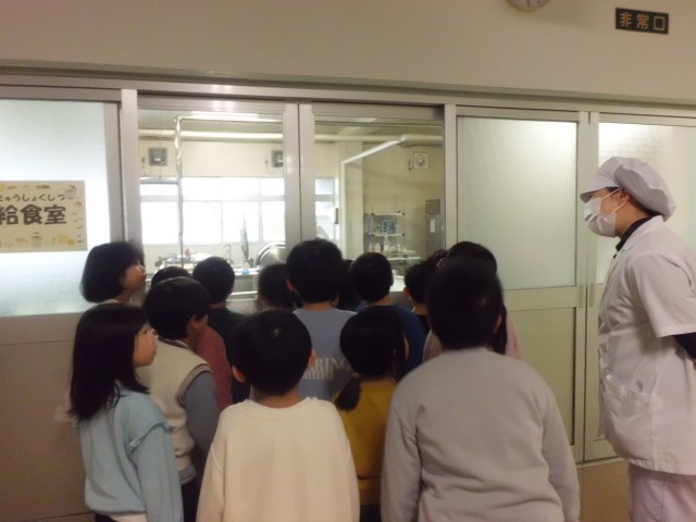 いつも食べている給食がどのようにつくられているのかを知るために、給食室の見学に行きました。