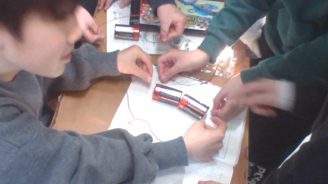 明かりがつくときとつかないときの、つなぎ方をたくさん調べました。子供たちは、「明かりがつくときには、何かきまりがありそうだな。」と気付いていました。