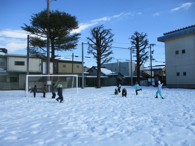 みんなで冬ならではの雪遊びを楽しみました。そりコーナーでは、ミニジャンプ台を作製。ジャンプに成功すると、歓声や拍手がわき起こっていました。