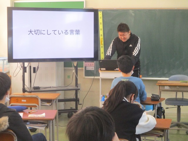 国語科の学習では、卒業を目前にした今、自分が日頃大切にしていることや夢をテーマにスピーチをしました。学習のまとめとして、スピーチコンテストを行い、互いの話の内容や話し方を評価し合いました。どのスピーチも思いがこもっていて、真剣に耳を傾ける姿が見られました。