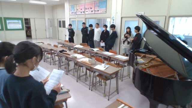 卒業式に歌う合唱曲の練習をしています。今日は、外部講師の先生に指導していただきました。