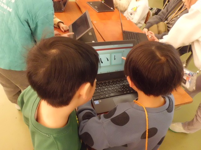 小学校について知ってもらうために、学校たんけんやクイズ等、一緒に活動をしました。