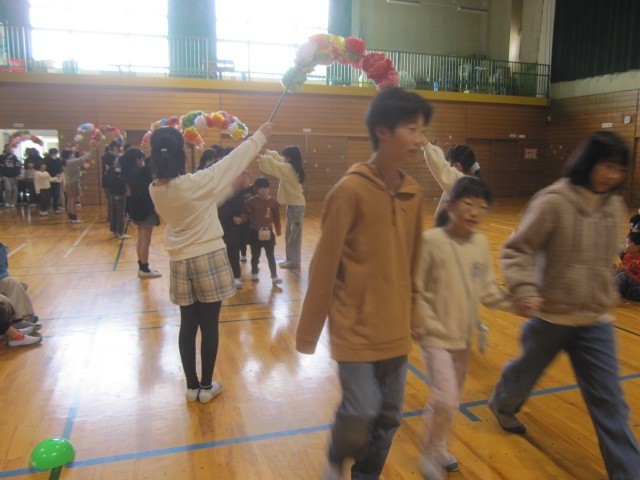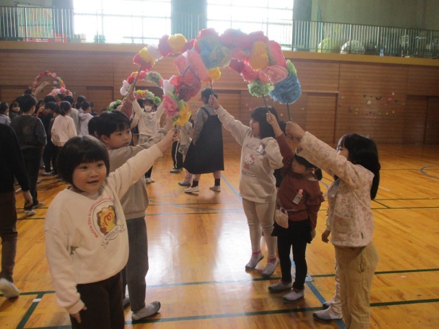 6年生と手をつないで入場をして、「おめでとう」や「ありがとう」の気持ちを伝えました。