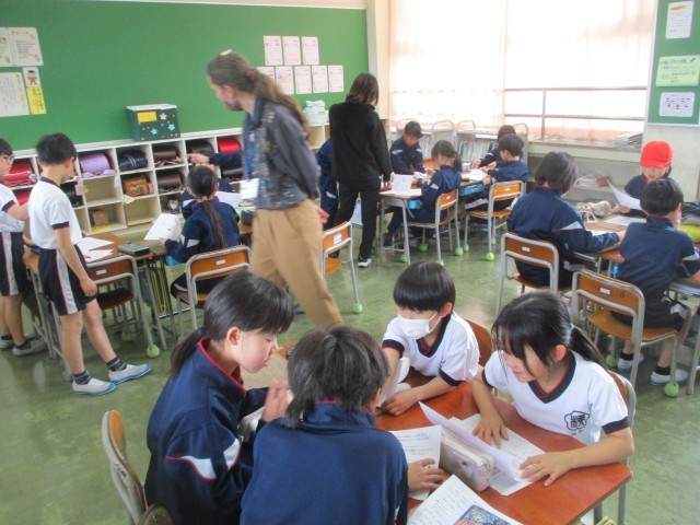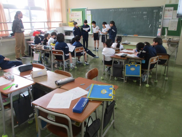 今日の外国語活動が、3年生最後の授業でした。『おおきなかぶ』を英語でやりとりしました。授業の最後には、先生方に1年間の感謝の言葉を伝えて、今がんばって取り組んでいる短縄の技を見ていただきました。