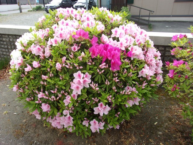 暖かい日が続き、校庭のツツジがきれいな花を咲かせています。