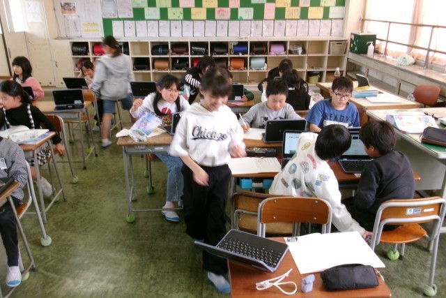 国語科の学習で、春の言葉について調べ学習に取り組んでいます。