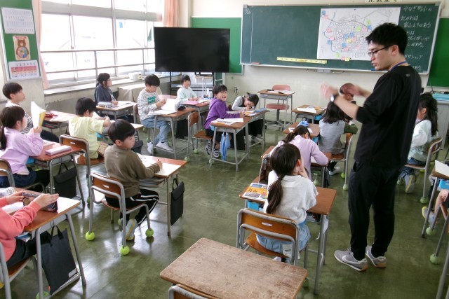 社会科の学習で、柳町長学校周辺の地理について調べています。