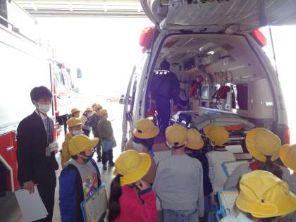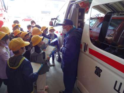 約3,000万円の救急車の中を見せていただきました。はしごの長さが40mのはしご車は、約1億6,000万円もすると聞き、驚きました。
