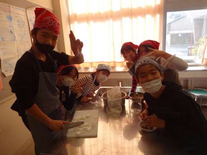 調理実習で味噌汁を作りました。包丁の使い方の技能には個人差が見られますが、班のみんなで協力したおかげで、上手に作ることができました。だしは、煮干しからとりました。