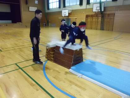 教頭先生に跳び箱運動の指導をしていただきました。初めに、腕の支持や体幹を鍛える基本の練習に取りみました。次に、開脚跳びのポイントを教えていただき、跳べない段を跳べるようになりたいと熱心に練習しました。アドバイスをよく聞いて、跳べなかった段を初めて跳べるようになった子もおり、とても喜んでいました。