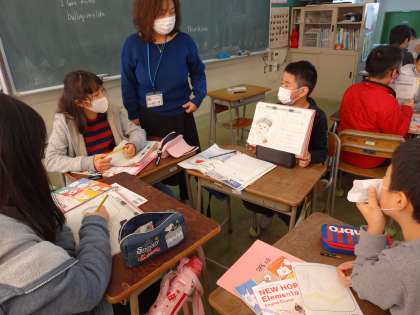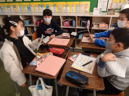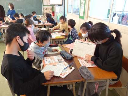 「あなたの地域を外国人に紹介しよう」の学習では、紹介したいことを絵と文(英語)で表し、グループの友達に発表しました。
