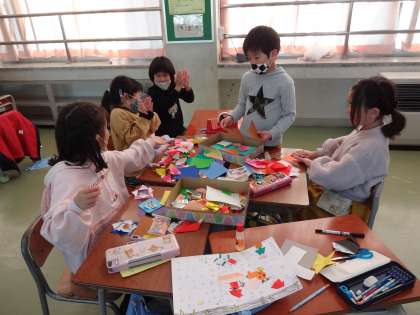 お楽しみ会開催に向けて、夢中になって準備を進める子供たち。