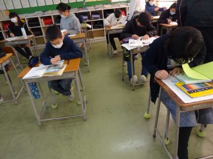 将来の夢・仕事や、将来に向けて興味のあることなど、資料や図書を調べ、新聞にまとめています。