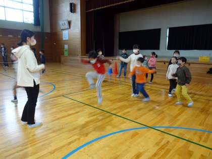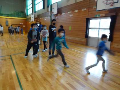 今日から、朝の体力つくり活動は、天候が悪い場合、体育館で大縄跳びに取り組むことにしました。