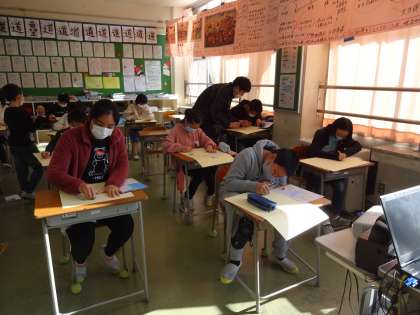 宮沢賢治の作品を読み、心が動いた場面から、想像を広げて絵で表現する学習です。
